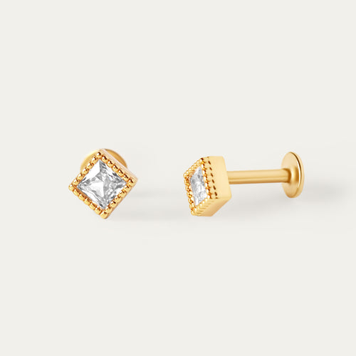 Fala CZ Studs (18K Gold Stainless Steel, Square)