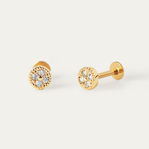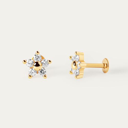 Fala CZ Studs (18K Gold Stainless Steel, Flower)