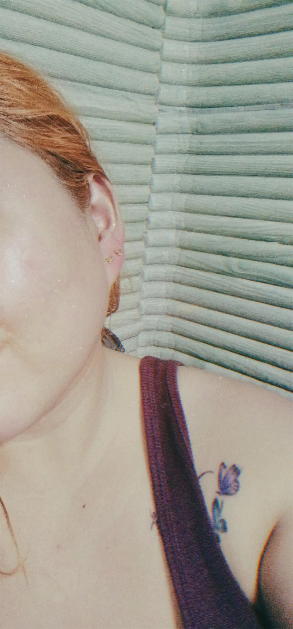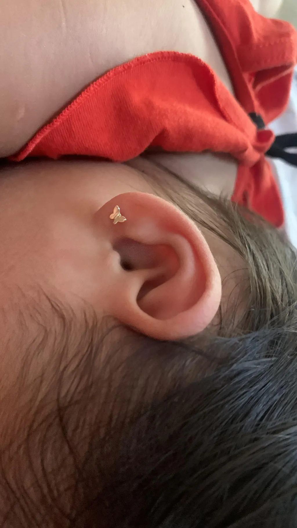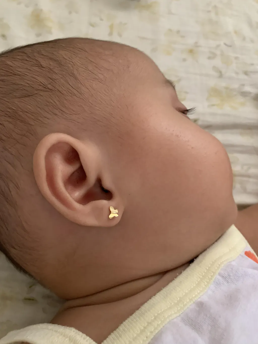 To wear, hold the earring post firmly with one hand and unscrew the ball back with your other hand. Screw back on to your desired tightness.