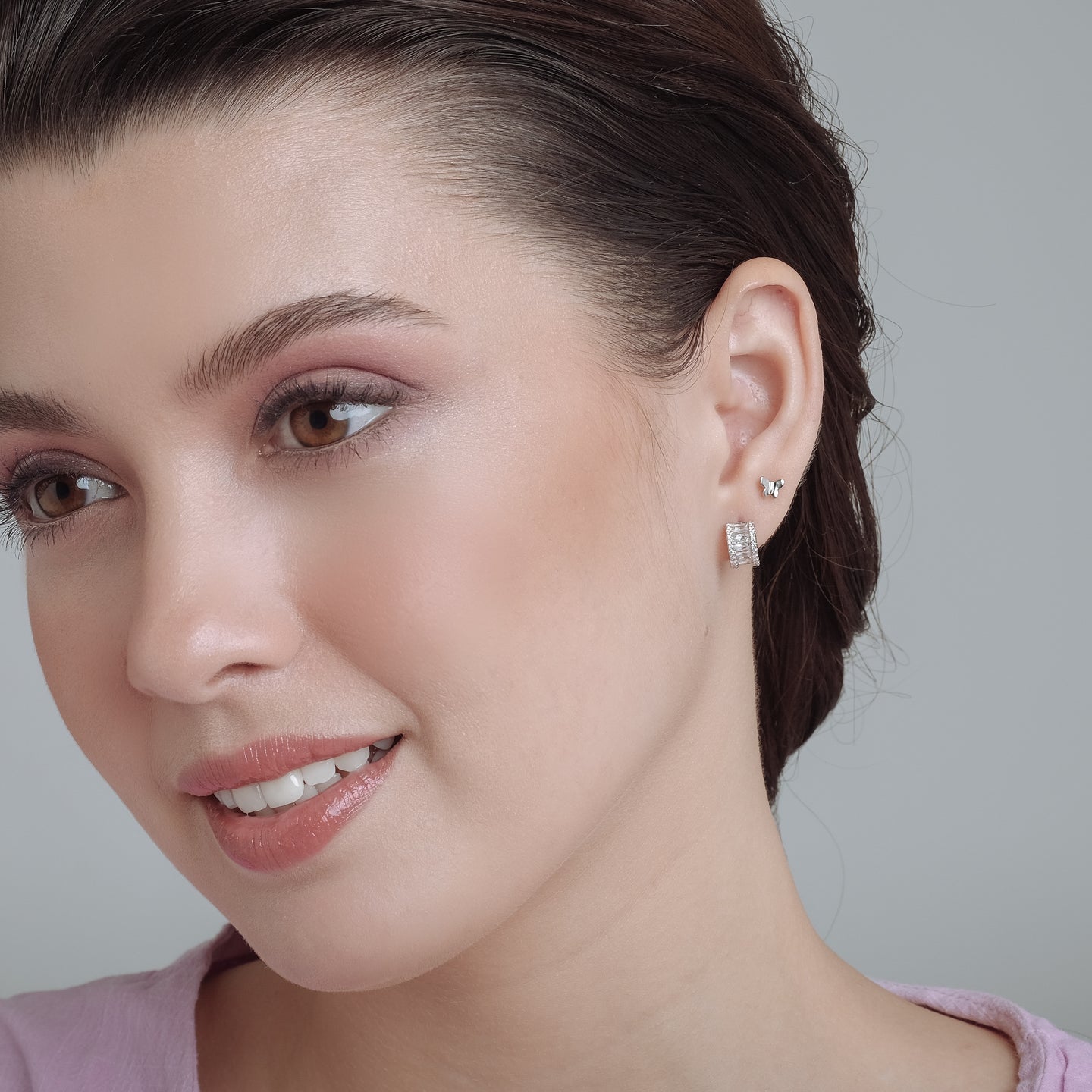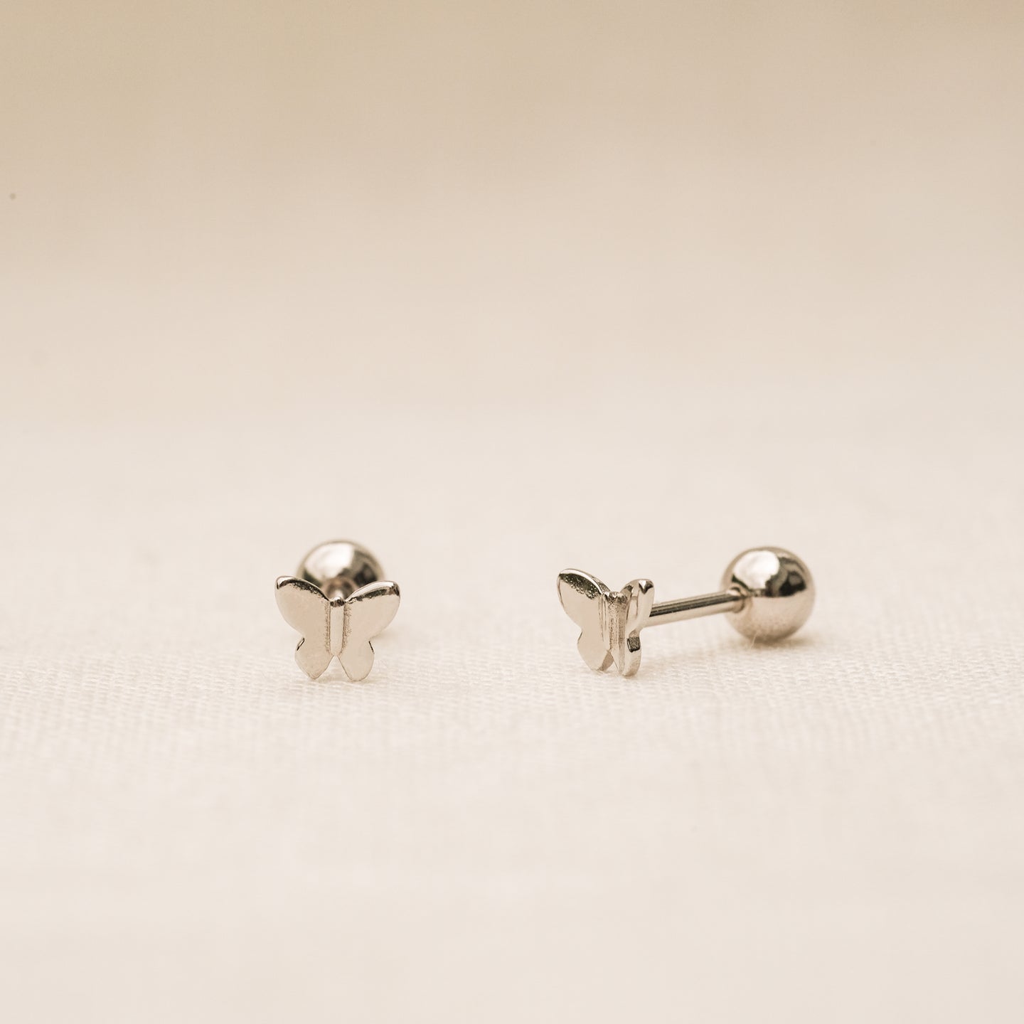 To wear, hold the earring post firmly with one hand and unscrew the ball back with your other hand. Screw back on to your desired tightness.