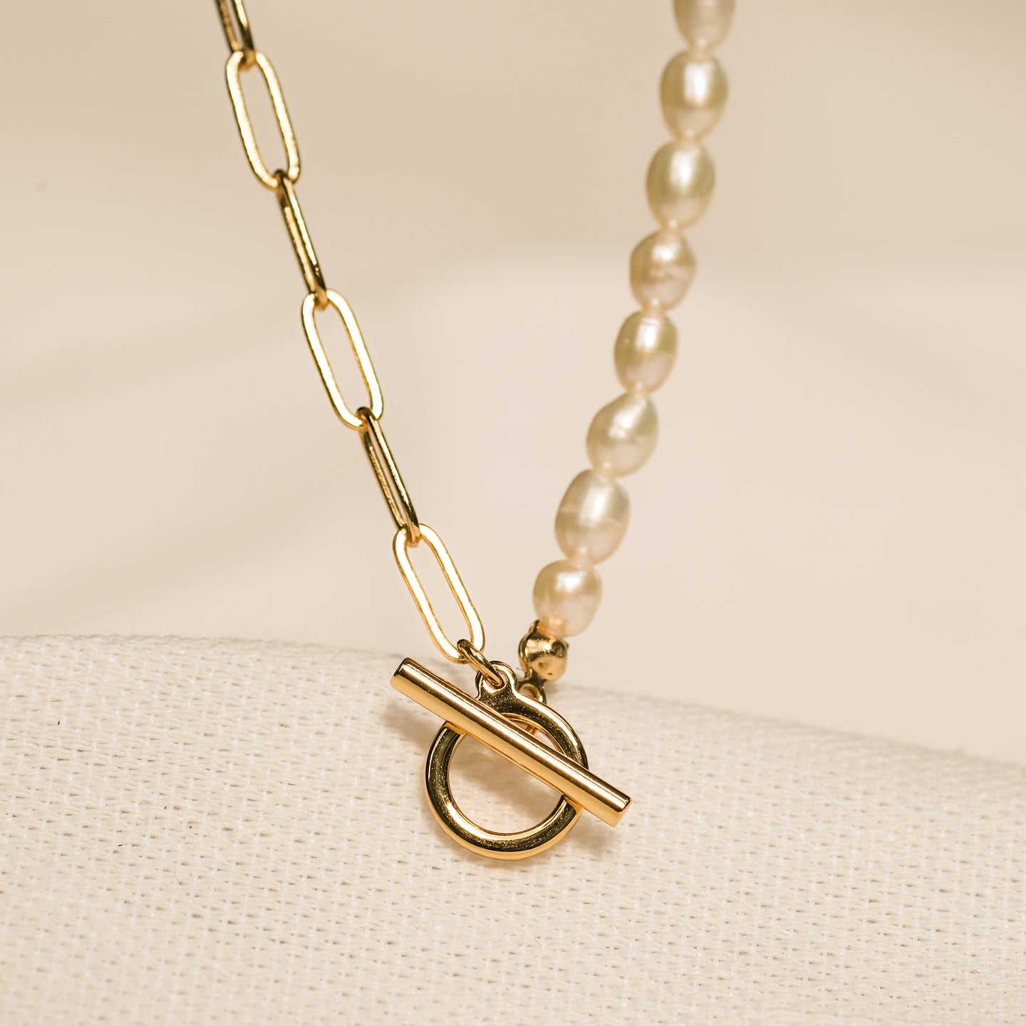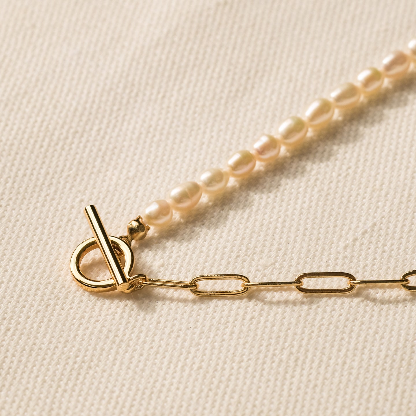 Materials: 18K Gold Brass (18 Karat Gold Coated on Brass), Freshwater Pearl