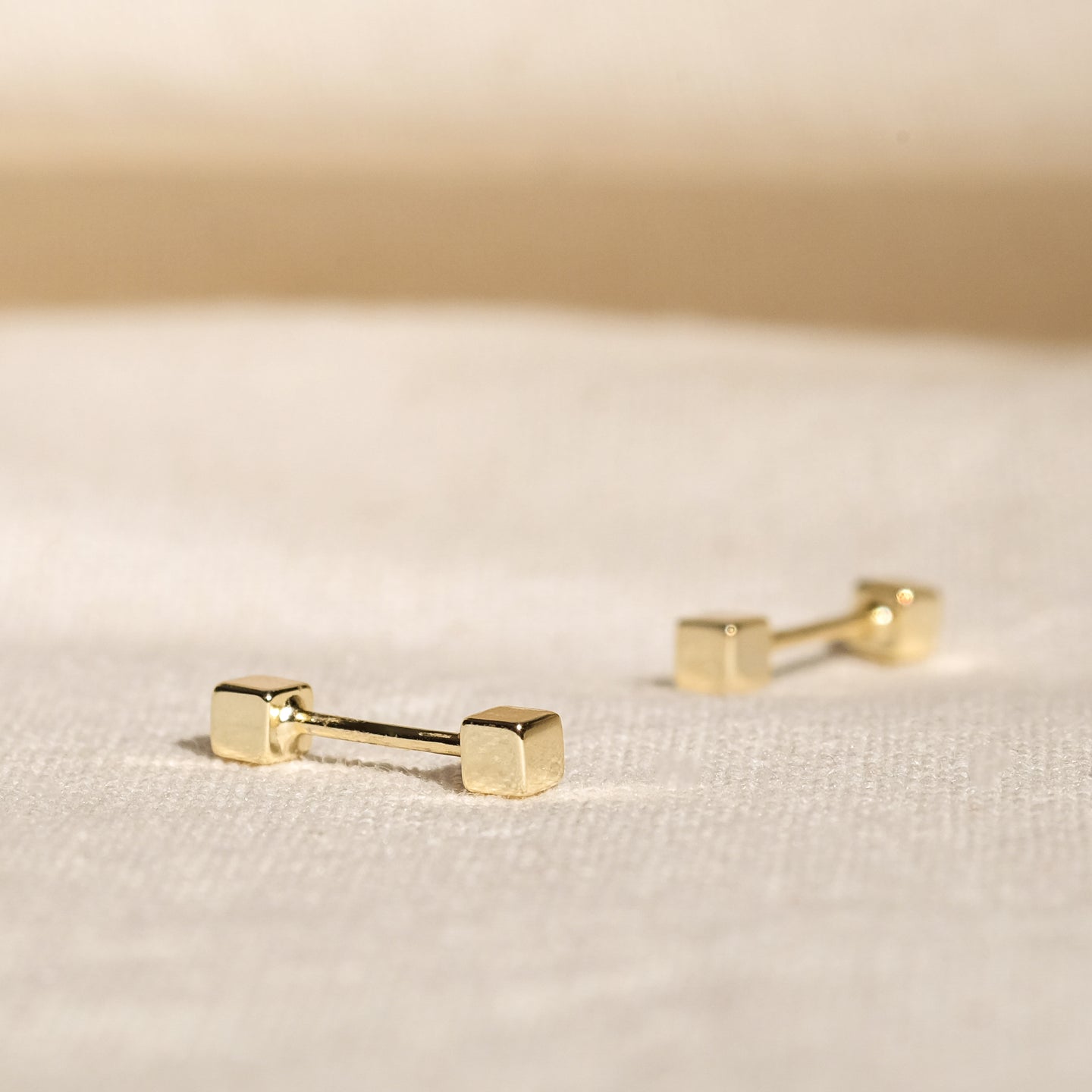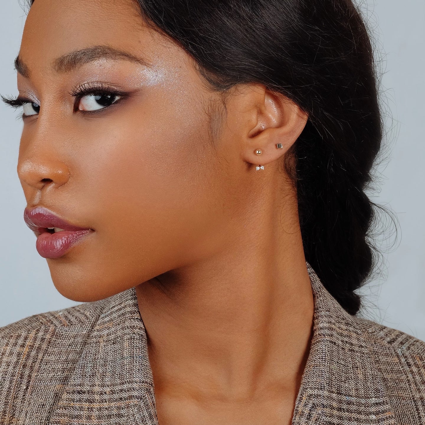 To wear, hold the earring post firmly with one hand and unscrew the ball back with your other hand. Screw back on to your desired tightness.