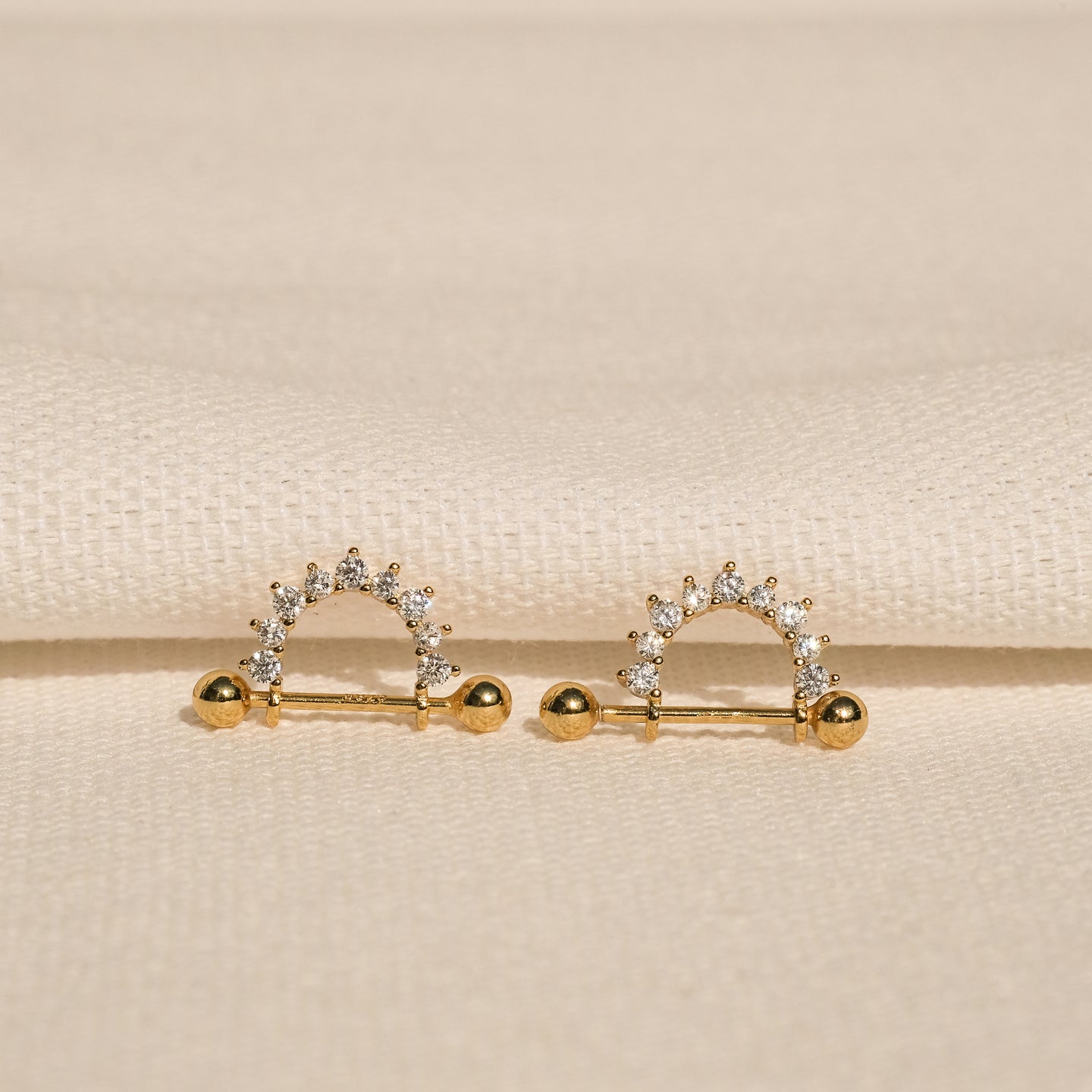 To wear, hold the earring post firmly with one hand and unscrew the ball back with your other hand. Screw back on to your desired tightness.