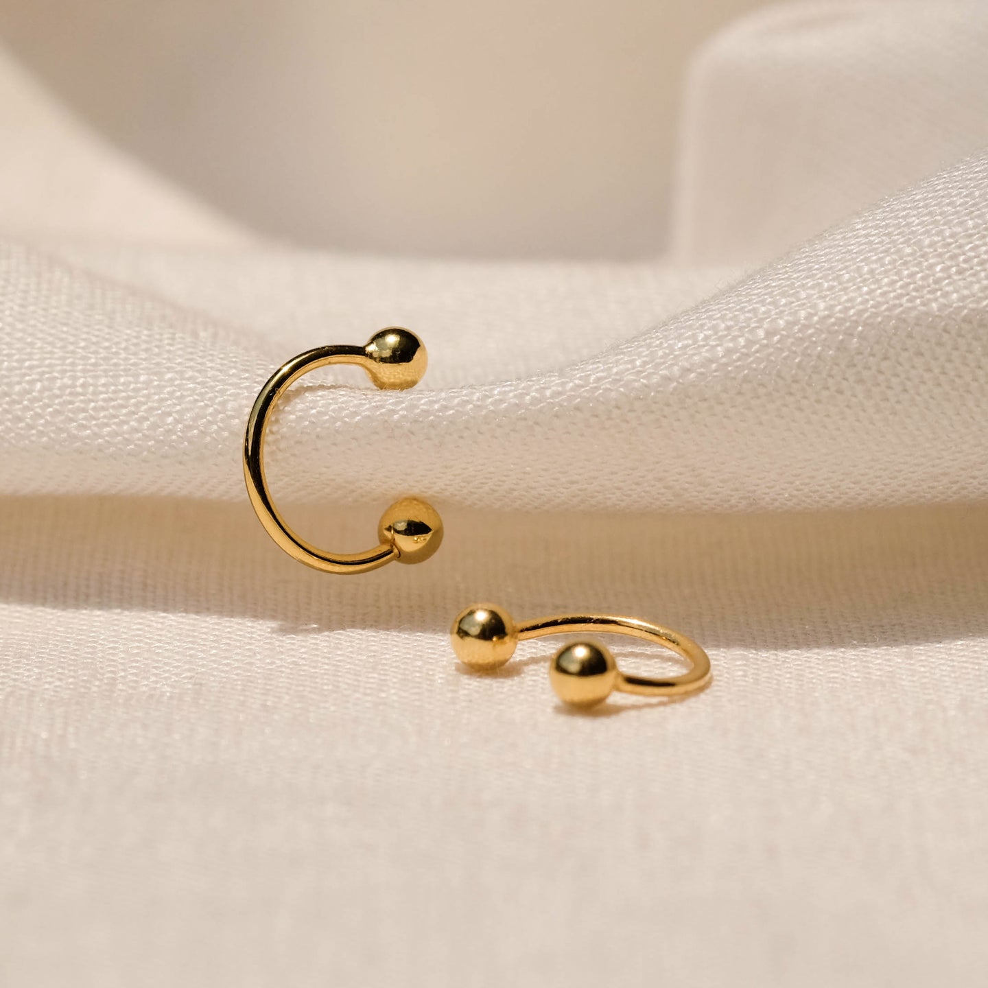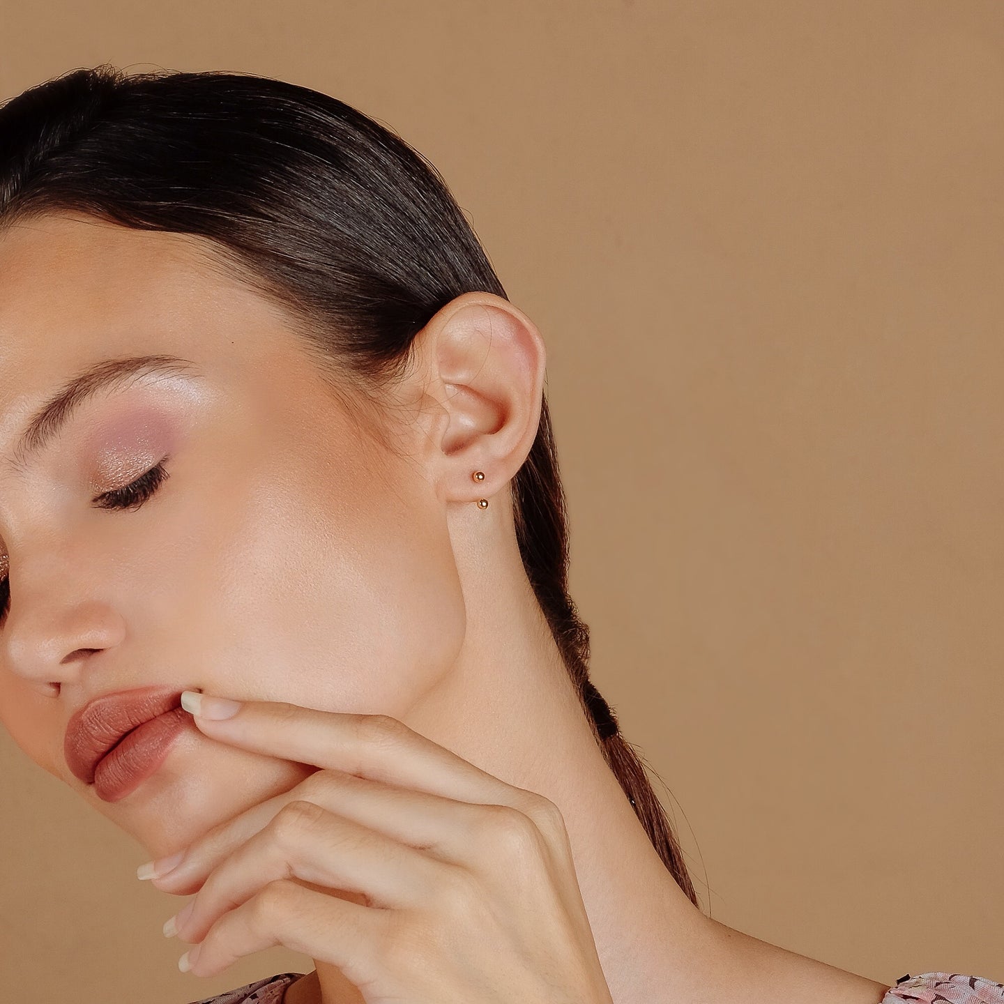 To wear, hold the earring post firmly with one hand and unscrew the ball back with your other hand. Screw back on to your desired tightness.