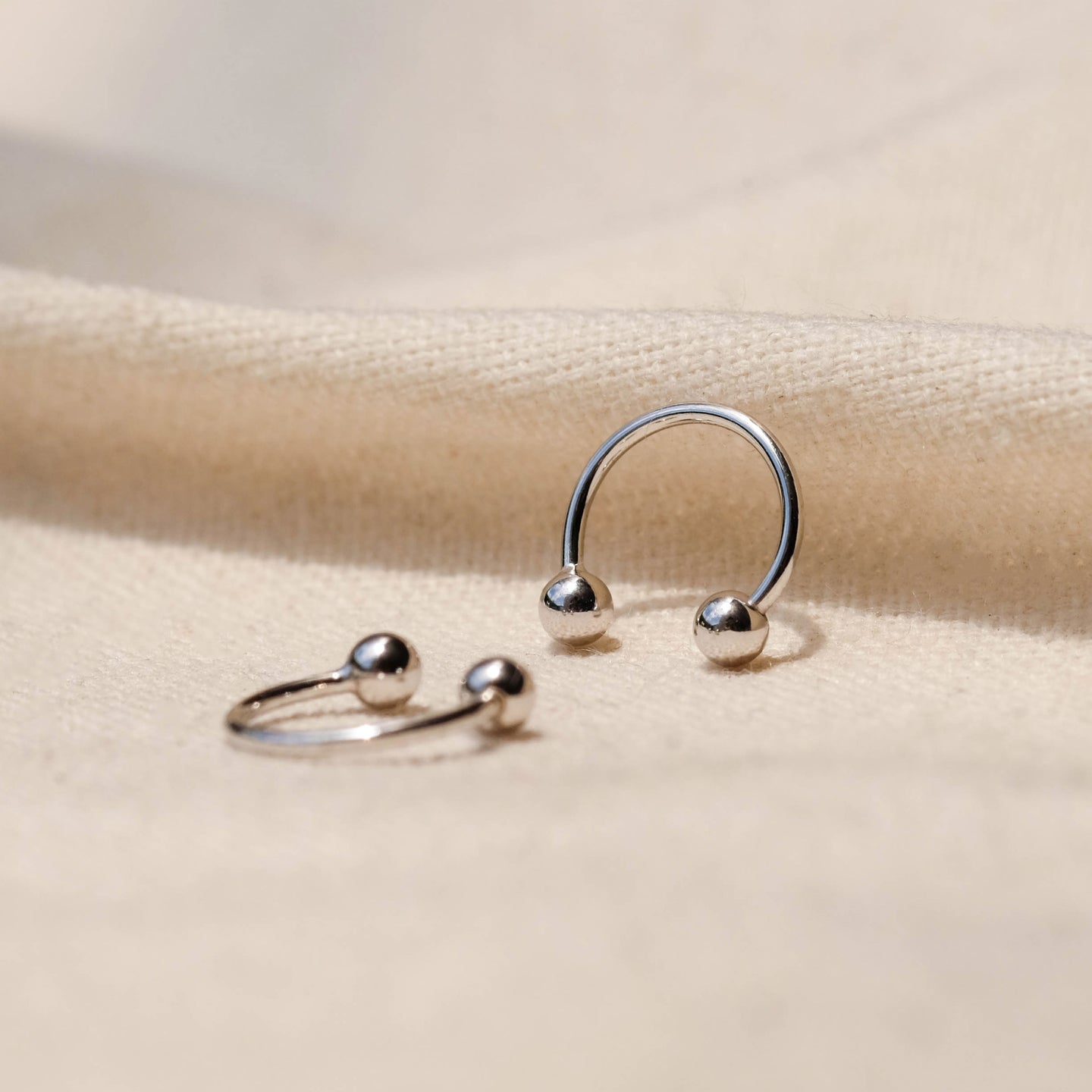To wear, hold the earring post firmly with one hand and unscrew the ball back with your other hand. Screw back on to your desired tightness.