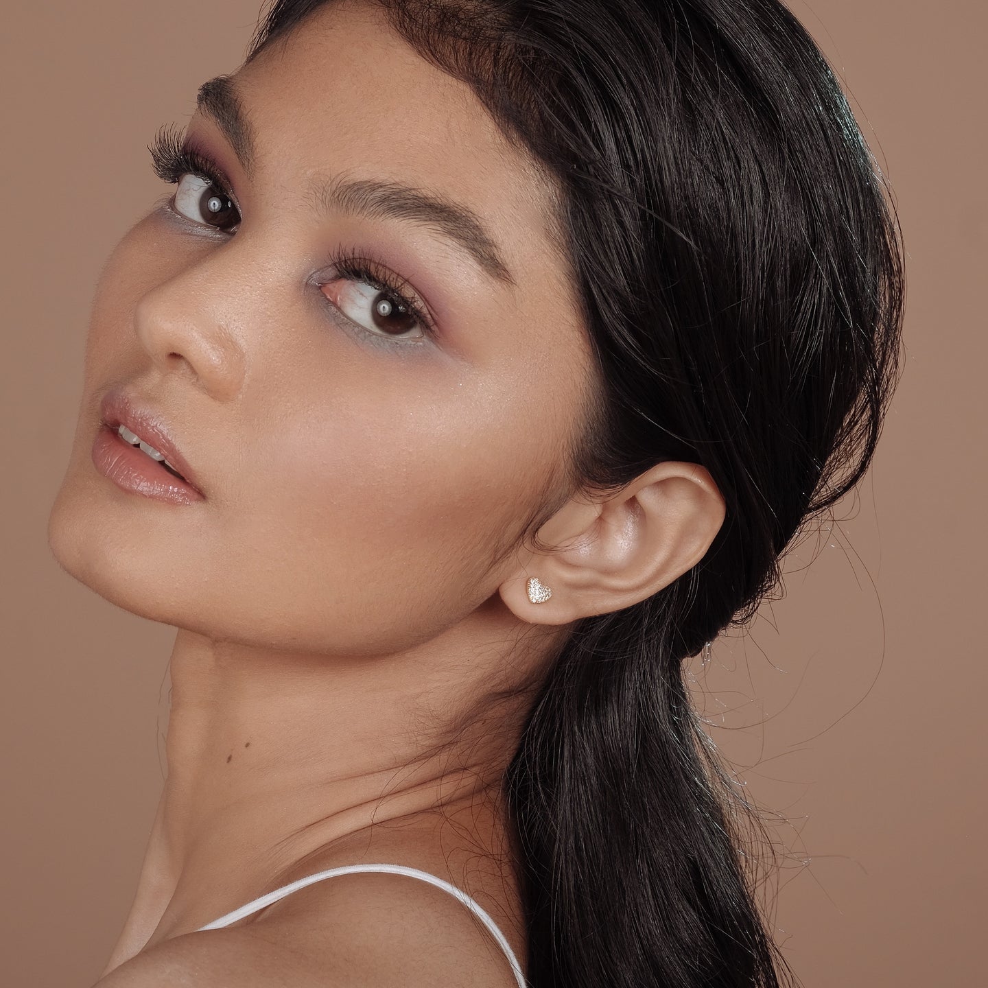To wear, hold the earring post firmly with one hand and unscrew the ball back with your other hand. Screw back on to your desired tightness.