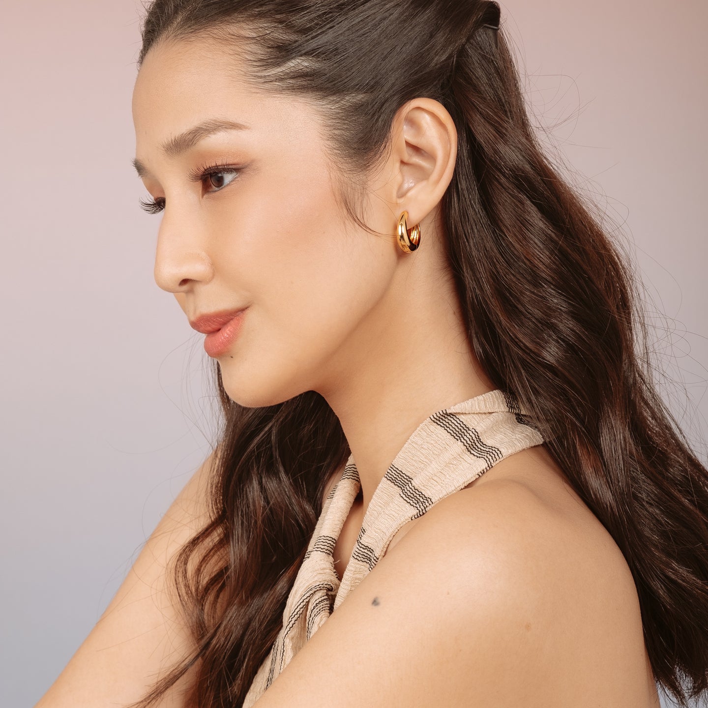 Seek Shine jewelry is tarnish-resistant and hypoallergenic.Les Tiny Hoops (18K Gold Brass)