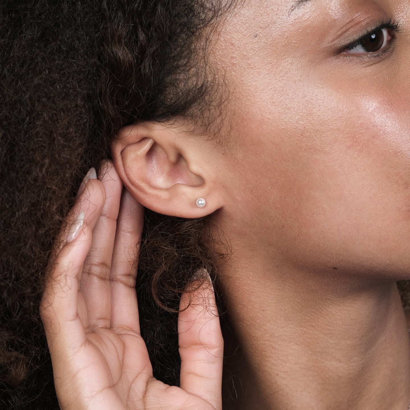To wear, hold the earring post firmly with one hand and unscrew the ball back with your other hand. Screw back on to your desired tightness.