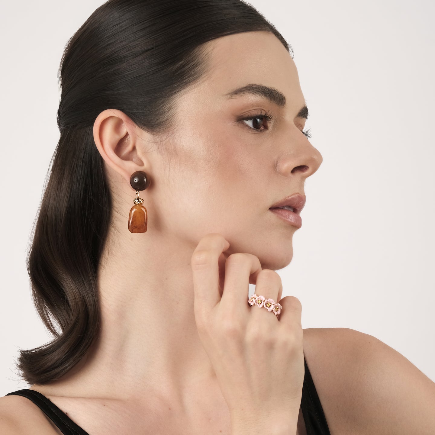 Seek Shine jewelry is tarnish-resistant and hypoallergenic.Resi Resin Earrings (18K Gold Brass, Mocha)