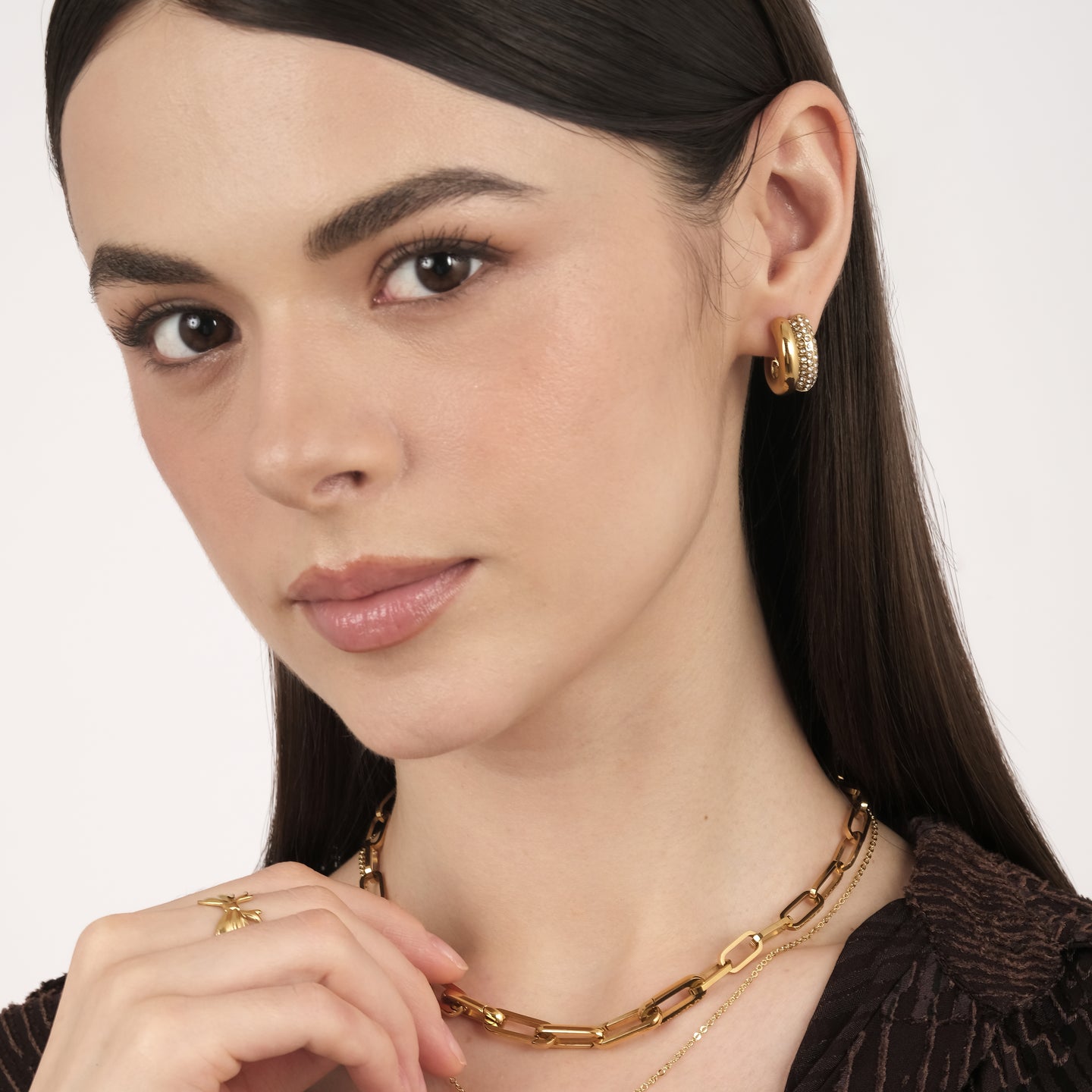 Materials: 18 Karat Gold Coated on Stainless Steel, Cubic Zirconia